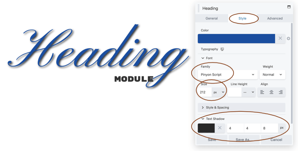 Tip: While you can choose a custom Google font in each Heading module, be careful about using too many different fonts if you're trying to pare down page load times. You can check load times of your combination of Google fonts at fonts.google.com.