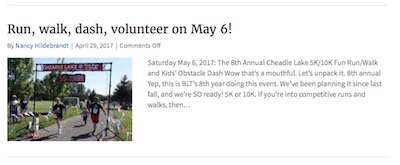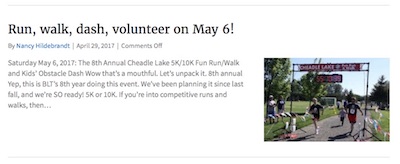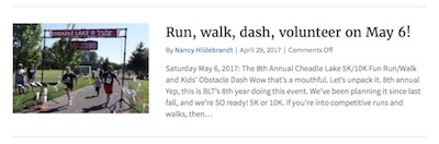 - The featured image can be set to a thumbnail, with the post info and excerpt appearing to the left or right of it, as in this screenshot: