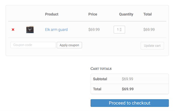 The display is what you'd see on an archive page, not on a true product page. There's the title of the product, the price, and an Add to Cart button displayed under the featured image. Clicking this item takes you to the product page.