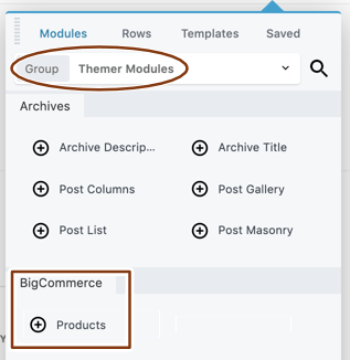 The field connection ensures the correct title is displayed no matter which type of archive you view. - A Products module from the BigCommerce section in the Themer modules group.