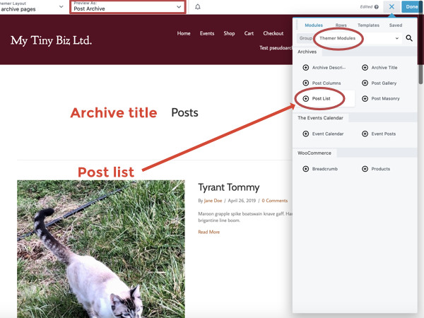 - A row that contains the Archive Title module and a Separator module underneath it.